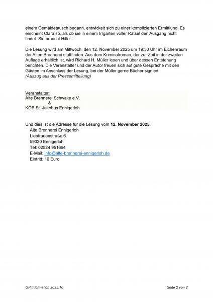 Richard H. Müller liest am 12.11. in 'Alte Brennerei Ennigerloh' aus seinem Roman 'Das Galeriepferd'