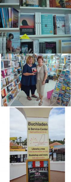 Anne Koch-Gosejacob mit ihrem Buch 'Miranda' auf Fuerteventura, dem Handlungsort ihres Buches, in der Deutschen Buchhandlung in Costa Calma Koch Gosejacob - Miranda - Die Legende einer Wiedergeburt