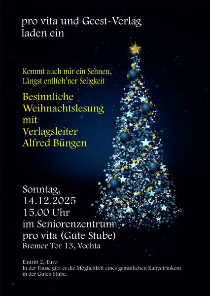 Besinnliche Weihnchtslesung am 14.12. - pro vita und Geest-Verlag laden ein ins Seniorenzentrum Gute Stube in Vechta