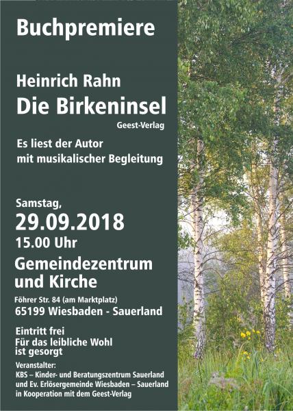 Buchpremiere Heinrich Rahn 'Die Birkeninsel' am 29. September in Wiesbaden
