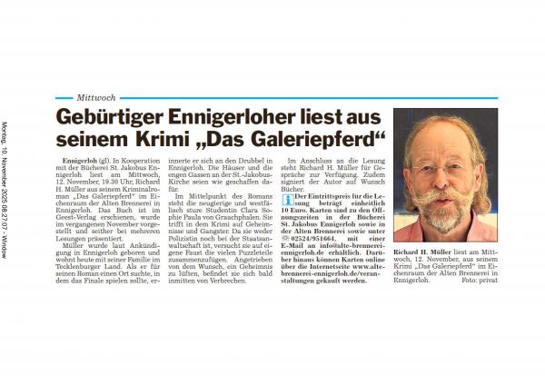 Presse kündigt Lesung Richard Müller am 12.11. in der Alten Brennerei in Ennigerloh an (Die Glocke) zum besseren Lesen bitte die PDF-Datei anklicken AnhangGröße 2025.11.06 Die Glocke Ankündigung.pdf277.83 KB