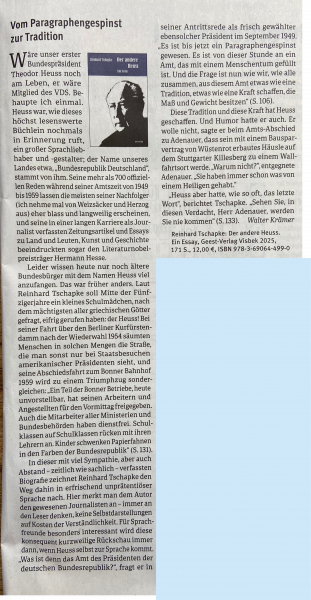Sprachnachrichten mit toller Rezension von Reinhard Tschapke 'Der andere Theodor Heuss'