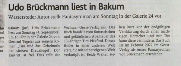 Udo Brückmann liest an diesem Sonntag in Bakum - Presse berichtet