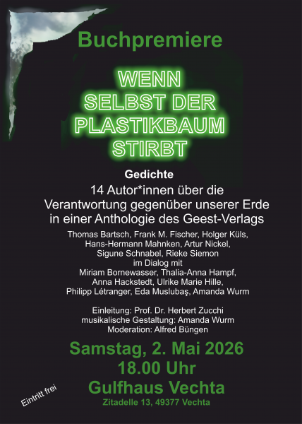 Buchpremiere 'Wenn selbst der Plastikbaum stirbt'-14 Autor*innen über die Verantwortung gegenüber unserer Erde am 2. Mai im Gulfhaus Vechta