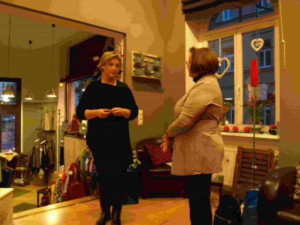 Cathrin Koester, die Inhaberin der Boutique, im Gespräch mit der Autorin