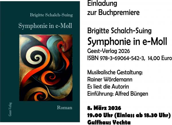 Einladung zur Buchpremiere von Brigitte Schalch-Suing 'Symphonie in e-Moll am 8. März im Gulfhaus Vechta