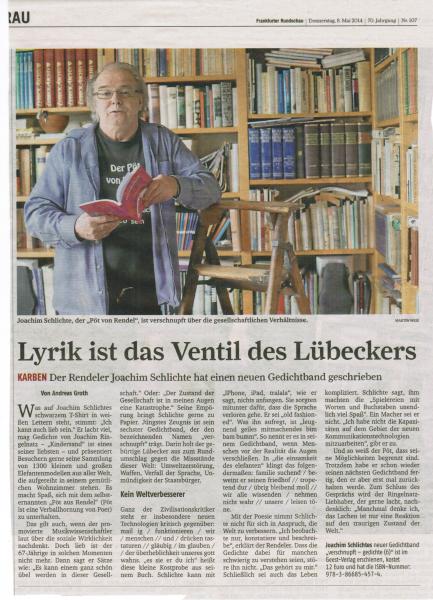 Frankfurter Rundschau stellt Joachim Schlichtes neuen Gedichtband 'verschnupft' vor zum besseren lesen kleines Bild anklicken und vergrößern