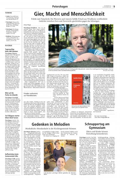 Presse schreibt über Sybille Fritsch und ihr neues Buch 'ANDERES,' ZUm Lesen bitte die PDF-Datei anklicken AnhangGröße oresse.pdf276.02 KB