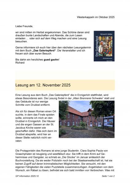 Richard H. Müller liest am 12.11. in 'Alte Brennerei Ennigerloh' aus seinem Roman 'Das Galeriepferd'
